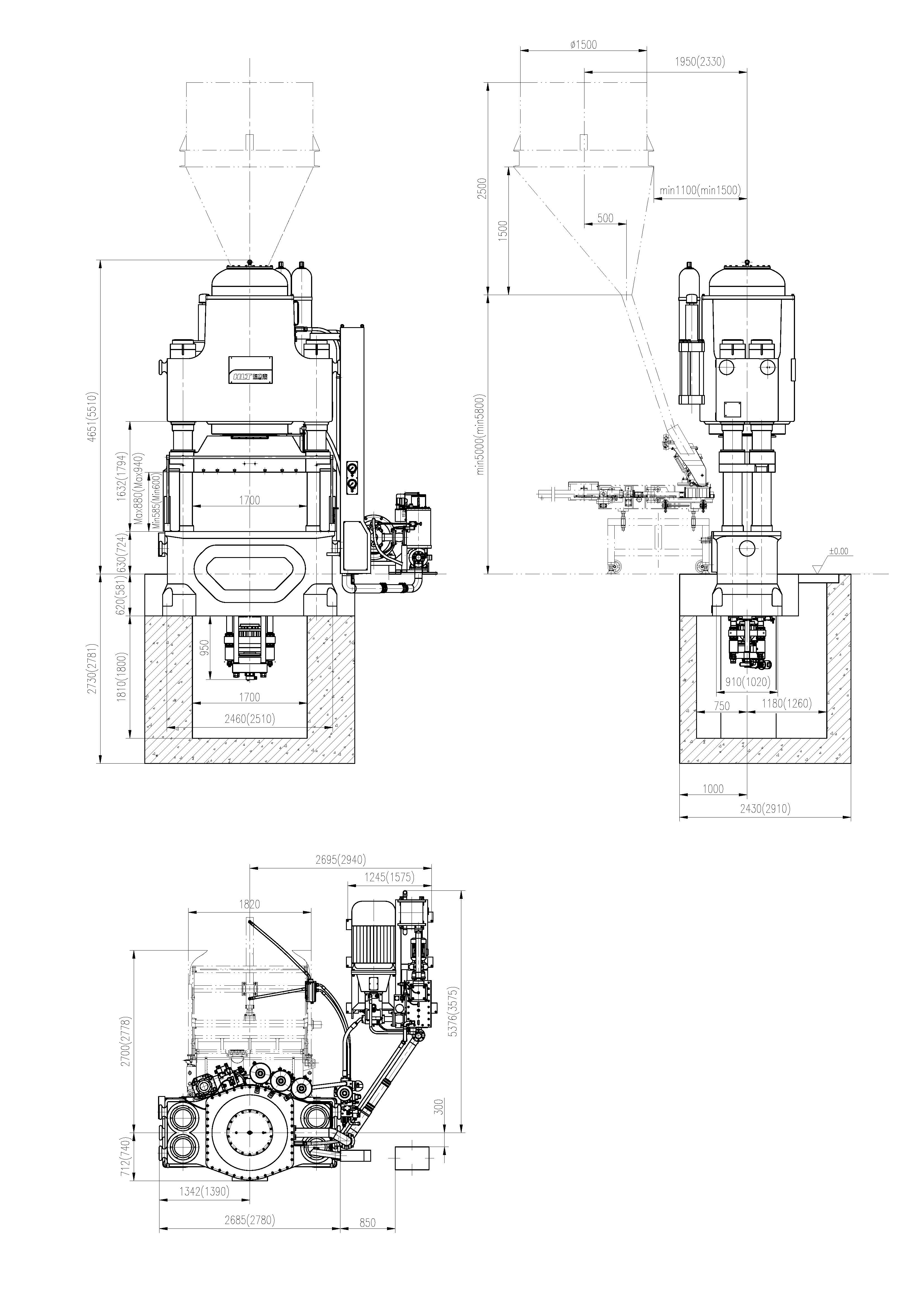 注:布局圖中括號內的尺(chi)寸(cun)為YPR2100L壓(ya)機的尺(chi)寸(cun)