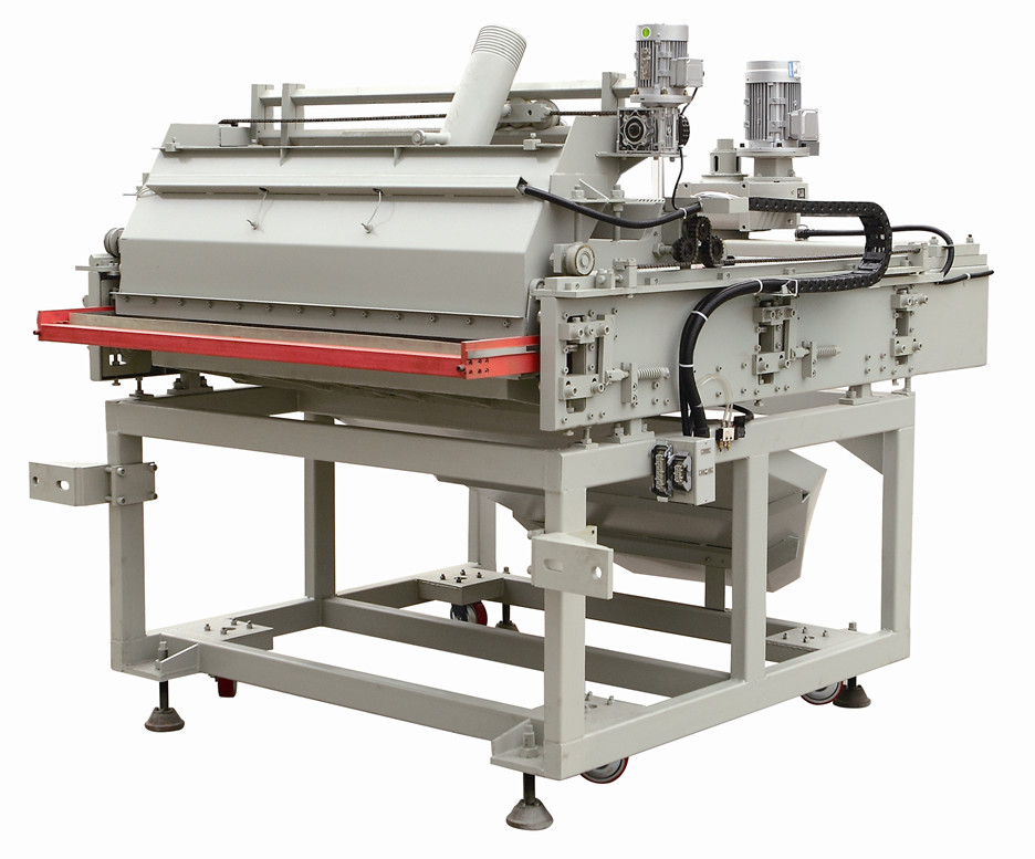 布(bu)(bu)料(liao)(liao)(liao)裝(zhuang)置(zhi)(zhi)(zhi)(zhi)是壓(ya)磚(zhuan)機(ji)重要的輔助設(she)備(bei),它的功能是輸送(song)陶(tao)瓷粉料(liao)(liao)(liao)到(dao)壓(ya)磚(zhuan)機(ji)模(mo)具(ju)的模(mo)腔,同(tong)時推出壓(ya)磚(zhuan)機(ji)壓(ya)制(zhi)好的磚(zhuan)坯到(dao)輸送(song)線,對壓(ya)磚(zhuan)機(ji)模(mo)具(ju)模(mo)腔進行(xing)一次(ci)布(bu)(bu)料(liao)(liao)(liao)。YP系(xi)列(lie)壓(ya)磚(zhuan)機(ji)配置(zhi)(zhi)(zhi)(zhi)的一次(ci)布(bu)(bu)料(liao)(liao)(liao)裝(zhuang)置(zhi)(zhi)(zhi)(zhi),可分為直線型(xing)布(bu)(bu)料(liao)(liao)(liao)裝(zhuang)置(zhi)(zhi)(zhi)(zhi)和曲(qu)柄型(xing)布(bu)(bu)料(liao)(liao)(liao)裝(zhuang)置(zhi)(zhi)(zhi)(zhi)兩種(zhong)。直線型(xing)布(bu)(bu)料(liao)(liao)(liao)裝(zhuang)置(zhi)(zhi)(zhi)(zhi)采(cai)用(yong)同(tong)步帶傳動、變頻(pin)器控制(zhi)電機(ji)的轉速,運行(xing)平穩(wen)、布(bu)(bu)料(liao)(liao)(liao)均勻。曲(qu)柄型(xing)布(bu)(bu)料(liao)(liao)(liao)裝(zhuang)置(zhi)(zhi)(zhi)(zhi)具(ju)有油馬達驅(qu)動曲(qu)柄和變頻(pin)電機(ji)驅(qu)動曲(qu)柄兩種(zhong)傳動方式,具(ju)有運動速度快的特點。